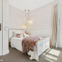The smoky glass mirrors on the wardrobe add a sense of space and reflect the on-trend Resene Wallpaper Collection 519839. The ceiling and surrounding walls in Resene Eighth Truffle and ceiling in Resene Alabaster which highlights the height of the room.