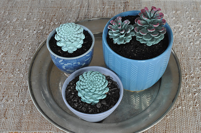 Step 3 Fill a plant pot with potting mix and push a pinecone into each pot. The best thing? There’s no need to water!