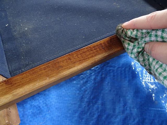Step 2. Sarah painted the slats on the seats of the chairs, and applied Resene Waterborne Woodsman in Resene Deep Oak to the remaining timber that wasn’t going to be painted.