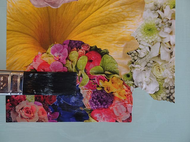 Step 5. To decoupage, apply one layer at a time, gluing the cuttings down and then applying the paste mixture over the top to seal each layer.