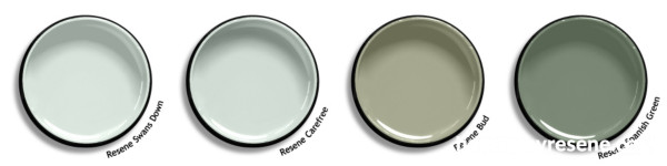 Gentle greens echo the natural world, restoring balance and harmony. Try barely there greens on bedroom or bathroom walls like Resene Swans Down and Resene Carefree, or deeper muted greens in an office or living room like Resene Bud and Resene Spanish Green: