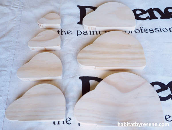 Step 1: Start by using a pencil to draw a simplified shape of a ladybug on to the wood. Draw on seven shapes, each one bigger than the last – the height of Fleur’s shapes are 4cm, 5.3cm, 6.6cm, 7.9cm, 9.2cm, 10.5cm and 11.8cm. Use a jig saw or band saw to cut the shapes out and then use sandpaper to sand any rough edges smooth.