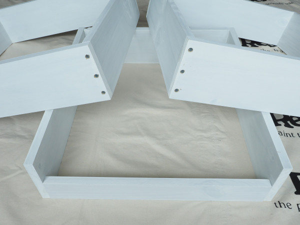 Step 1: Start by making the three boxes. Cut the fence palings to length – the short sides of my boxes are 510mm long and the long sides are 580mm long. You will need 6 of each size to make three boxes. Take one of the short sides and rip it down with a table saw length ways so that it is 70mm wide. Prime all the boards with one coat of Resene Quick Dry and then screw the long sides into the ends of the short sides to create three four-sided boxes. Countersink the screw holes and use galvanised screws.