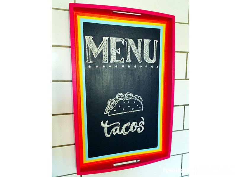 Step 5 Once fully dry, use white chalk to turn the tray into a menu board for the kitchen – starting with Taco Tuesday!