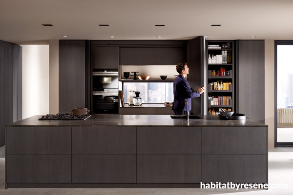 Open up your kitchen with ease when cooking or hosting guests. The REVEGO door fronts fold into the pockets when open, making the best use of space with a seamless look. Pair this innovative system with cabinetry stained in ReseneColorwood English Walnut or ReseneColorwood Dark Oak, paired with contrasting walls in Resene Merino or Resene Quarter Joss.