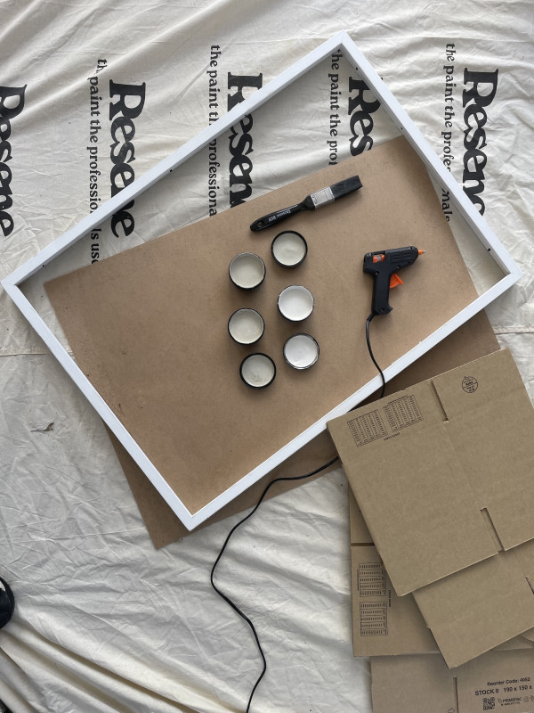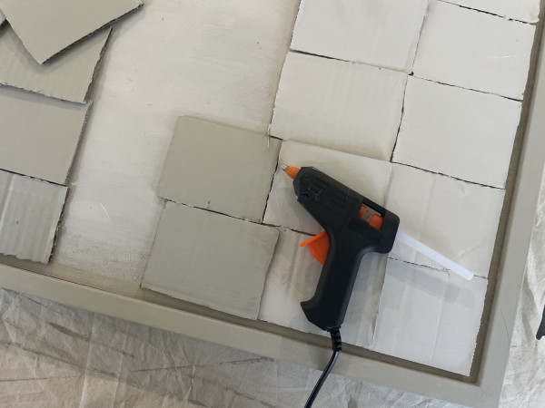 Step 6: Once you are happy with the placement, secure the cardboard pieces to the backing wall with glue.