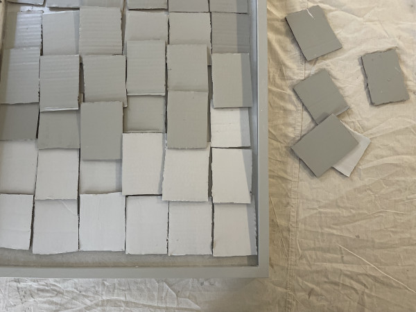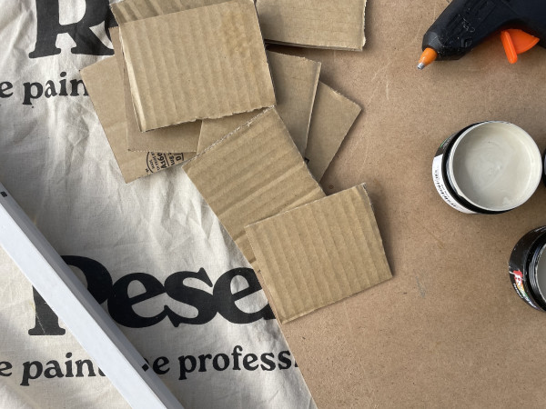 Step 1: Cut cardboard into similar sized rectangles, with slight variations for an organic and not-so-perfect effect.