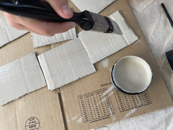 Step 2: Paint your rectangles using a Resene testpot brush. Allow to dry. (We only required one coat, but it may depend on your cardboard to whether you require two coats.)