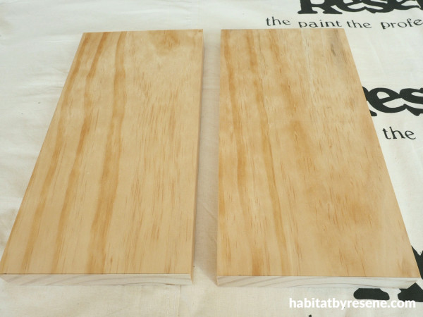 Step 5: Prime and then paint the two corner edges of the board where the top surface hasn’t been painted with Resene Tussock and Resene Hemlock.