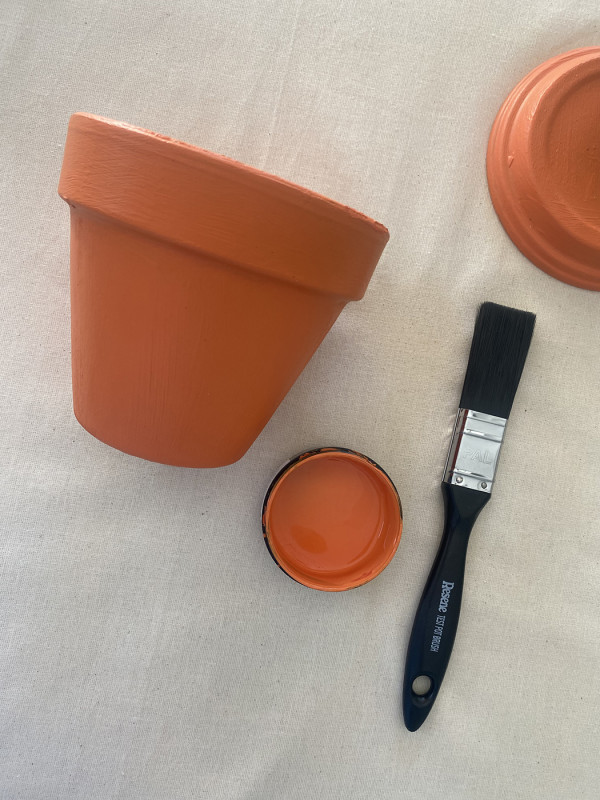Step 1: Paint your terracotta pot and lid in Resene Ecstasy using a testpot brush.You may need two coats of paint for best coverage.