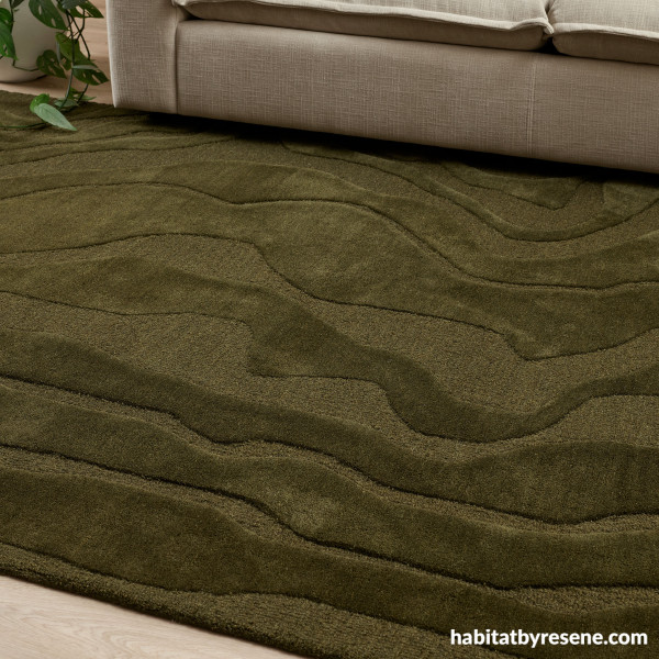A wool rug is the perfect addition to any home during the warmer months, or just if you need some added colour and texture. The Mira Rug in Olive from Target brings an organic, calming presence into any room. Its carved design adds gentle movement and visual interest, uplifting the atmosphere of living rooms, bedrooms, and open-plan spaces with ease. It also has a timeless look that pairs effortlessly with earthy palettes, natural textures and modern New Zealand homes. Pair this with a similar hue in Resene Olive Green or complementary shade like Linen, Half Aubergine or Resene Colorwood Meranti: