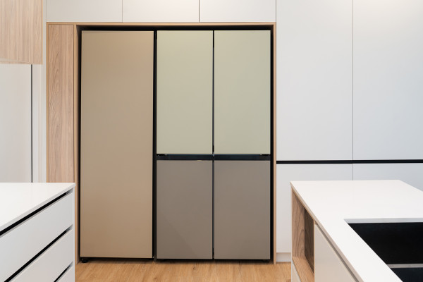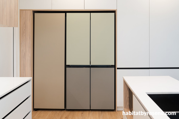 Surrounded by crisp white, this Samsung Bespoke fridge is coloured in Resene Triple Tea and Resene Green Spring – a fresh, inviting combination that pairs soft beige with a gentle, earthy green for a subtle nod to nature. Customise your own kitchen with Samsung x Resene and make it truly unique to your style. There’s a wide range of colours to choose from to seamlessly match, or contrast, with your walls and cabinetry. You could try a Bespoke fridge or dishwasher in spring shades like Resene Shilo, Resene Designer White, Resene Pink Lady or the classic Resene Alabaster.