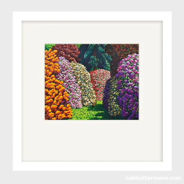 Karl Maughan’s distinctive works are well-known in contemporary New Zealand art. These stunning spring garden paintings from Father Rabbit bring so much colour and life to any home, framed in a simple white frame to let the art do all the talking on your wall. This piece would work well in a colourful maximalist home, but it would really shine with walls in crisp whites like Resene Eighth Black White and Resene Eighth Sea Fog, or against dark shades like Resene Deep Teal and Resene Holly.
