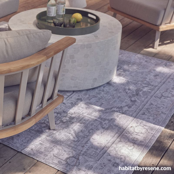 The Lav Washable Floor Rug from Freedom Furniture is a stylish and practical addition to your home. Vintage Persian-inspired patterns with a distressed finish exude a rustic vibe. Its subtle silver tone creates a muted colour palette that can be incorporated into any décor style. This rug is made from polyester so it is durable and extremely soft underfoot and is ideal for high traffic areas, pet and kid friendly as it can be thrown into the washing machine. Use it either indoors or out, paired with cool summery hues like Resene Black White, Zircon, Heartbreaker or Ghost: