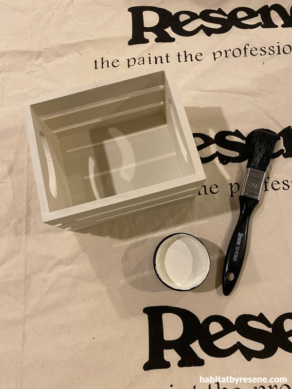 Step 2:Paint the mini crate in another of your chosen colours. We used Resene Thorndon Cream for our crate.