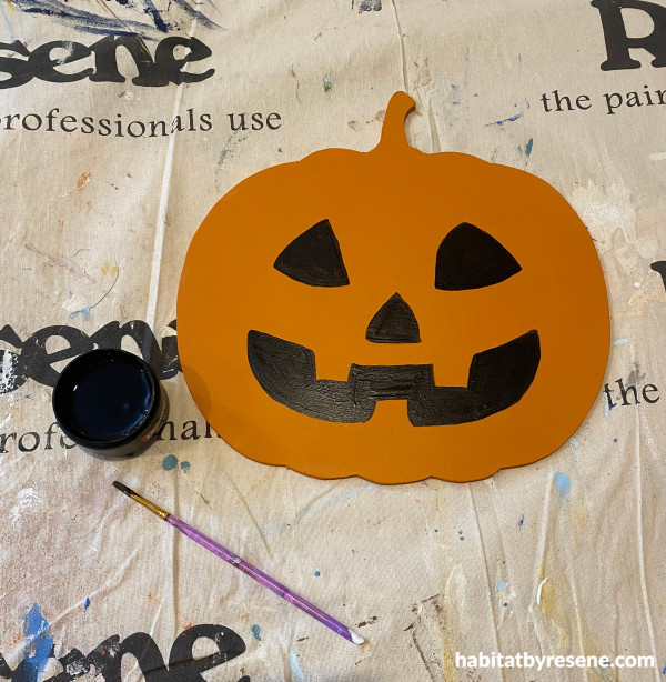 Step 5: Using a fine paintbrush, paint the eyes onto the pumpkins in Resene Black.