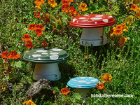 Step 4: Assemble the toadstools by centering the plate, painted side up, on top of the upside-down pot. If you need your toadstool to be more stable, affix the plate using epoxy or glue.