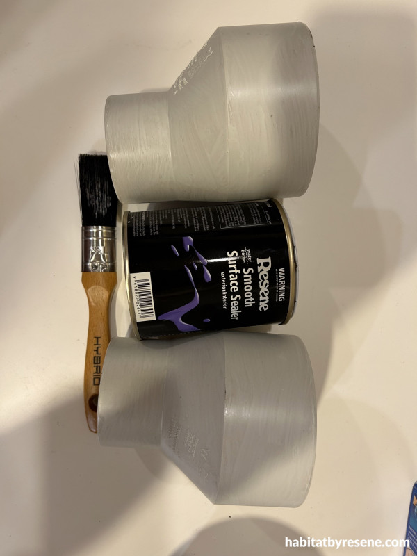 Step 1: Start by applying Resene Waterborne Smooth Surface Sealer to the pipe extender. Make sure you let this dry for a few days in order to help your paint adhere to the surface.