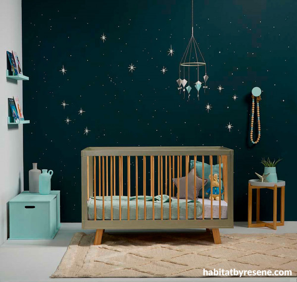 Ditch the nightlight for a glow in the dark galaxy wall. The moons are painted on this wall using Resene FX Nightlight from the Resene Special Effects range and will delight the young astronaut in your family. Or, you can throw a lesson into the mix by creating the phases of the moon across their bedroom wall. For more tips on how to get the look, click here
