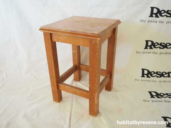 Step 1: Start by sanding your old stool with a medium grit sandpaper. Wipe away any dust and prime with one coat of Resene Quick Dry.