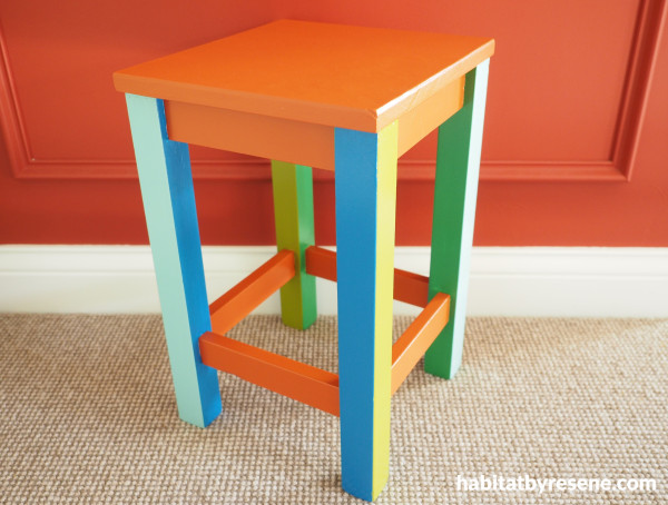 Most of us have old pieces of furniture lying around, often worn and tired looking, and screaming out for a new life. This painted stool shows just how much colour can change a piece of furniture and having it looking new again. And if you don’t have an old stool at home, we’re sure there might be a few sitting at your local Op Shop just waiting to be rescued.