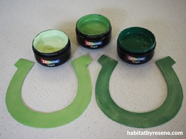 Step 4: Experiment on the other horseshoes with different base colours under Resene Go Go Go.