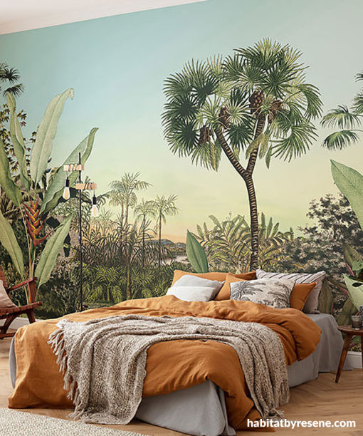In a holiday house you can push the boat out in a way you might not do at home. Go full mural, with a luxe mural from the Resene Wallpaper Collection. Murals are once again modern statement art pieces and can add personality to a space. Flamboyant themes like palm gardens or luxe celebrations of pattern are trending, and by adding a mural to a feature wall you can create your own built-in art gallery.
