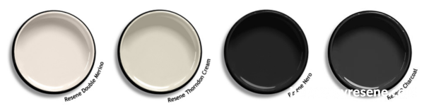 A creamy white room creates the perfect canvas for a calm, elegant space, letting natural light bounce softly around the walls. To add contrast and depth, black accents, like these cushions, rug and table from OLLO bring a modern edge without overpowering the room’s warmth. It’s a timeless combo that feels effortlessly refined. Try similar hues like Resene Double Merino and Resene Thorndon Cream, and to match your décor paint smaller items like plant pots and vases in black shades like Resene Nero and Resene Charcoal.