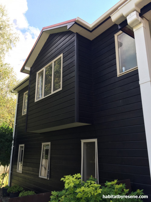 It was a labour of love giving her cedar-clad home this sleek black facelift. Resene Woodsman Pitch Black gave Katherine the effect she was hoping for, while the trims are Resene Tea.