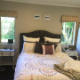 Resene Quarter Delta is a peaceful backdrop for this bedroom with Resene White on the ceiling and Resene Quarter Rice Cake on the trims.