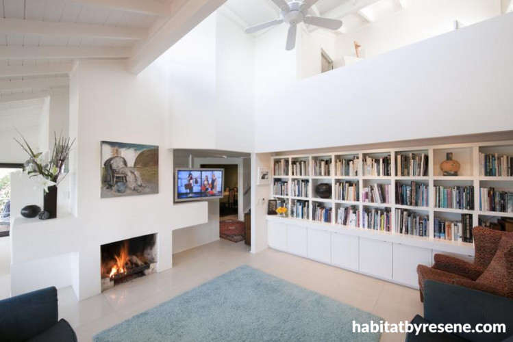 The living room used to have dark ceilings, but John and Margie have painted them in Resene Quarter Pearl Lusta, making the space appear larger and brighter.