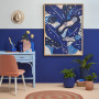 This working nook has been transformed with bold use of blue tone Resene Aviator. Not only does the repetition of the same colours across a number of different surfaces here create a sense of rhythm, so do its horizontal lines, including the ‘horizon line’ that divides the wall and the shape of the desk.Top wall in Resene Triple Alabaster, lower wall in Resene Aviator and floor in Resene Romantic. Desk in Resene Sail and chair in Resene New York Pink with legs in Resene Triple Alabaster, painted rug in Resene New York Pink and Resene Triple Alabaster, plant pots in Resene Aviator, Resene Bunting and Resene New York Pink, tray in Resene Cornflower, small cardboard boxes in Resene Torea Bay, Resene Cornflower and Resene Aviator and plant pots in Resene Japonica and Resene Wax Flower. Artwork by Alice Berry, chair from Mocka, tray and boxes from Kmart.Project by Kate Alexander, image by Bryce Carleton.