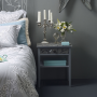 It's a perfect bedroom setting for any season... uncluttered, layered up for winter, dressed down for summer, with little pops of bright colour to keep it cheerful whatever the weather.