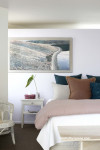 This elegant yet relaxed bedroom is the master in a single-floor waterfront apartment – a quiet retreat from sun-filled, beach living in Milford, Auckland. Once the permanent home of an art-loving couple with an eye for timeless classics, stylist Kate Alexander has pared it down to enduring furniture and a few key pieces of statement artwork.