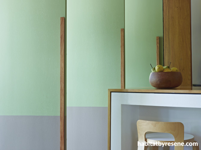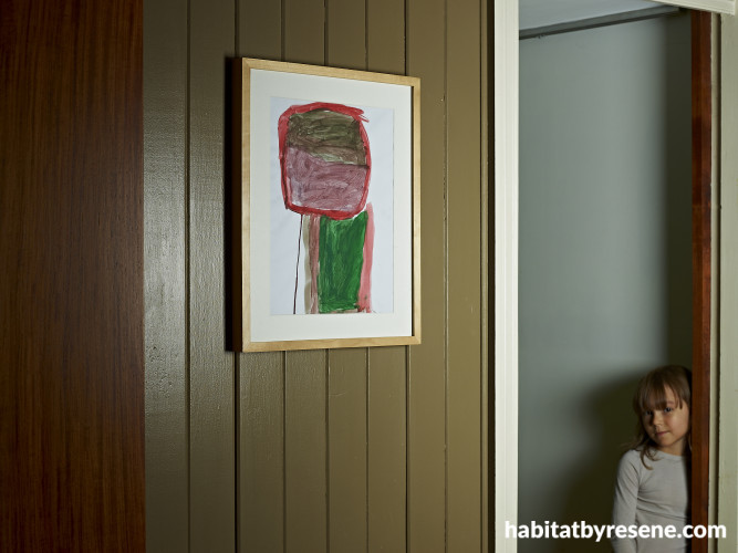 Resene Woodstock and Double Napa were chosen to represent the tree canopy which dominates the view of the back garden. The colours also add calmness to the interior spaces.