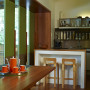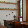 Because of space limitations, custom-made joinery was used throughout the house; the doors and windows are part of this language. All elements were designed to maximum effect and performance. A desk becomes a buffet for dinner parties, a book shelf houses china and glassware behind, an entry is framed with a cupboard that houses phones, wine and other household items, and doors can be selectively opened or closed to control the breeze.