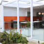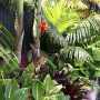 Subtropical plants were chosen for their fast-growing lush nature, and include bangalow and kentia palms as well as canna lilies, bromeliads and the groundcover Philodendron xanadu.
