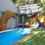 The pool is at a slightly lower level to the rest of the garden, which follows the natural typography of the section but this also gives extra privacy in a suburb where neighbouring houses are fairly close.