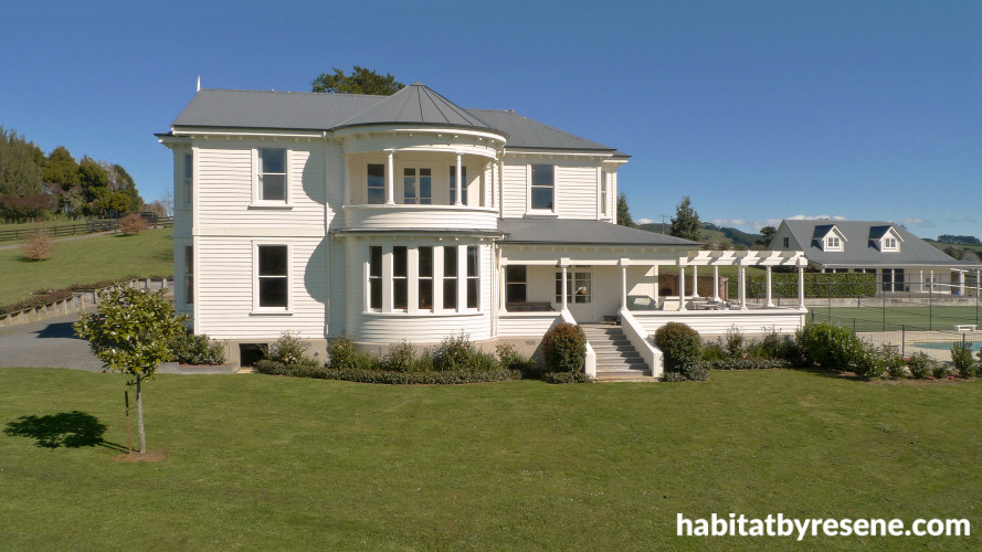Built in 1880, the manor has been restored to a classical look with Resene Quarter Spanish White.