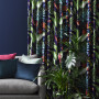 Exotic tropical prints bring a slice of paradise to interiors with new fabric, Pandora. Here, the Sapphire colourway falls against walls painted in Resene Redemption Blue.