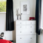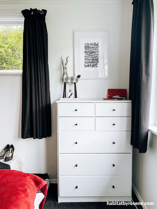 Joanne also took the chance to embrace her passion for upcycling furniture, painting the wardrobe doors and brick mantel in Resene Blackjack and updating her dressing table, coffee table and wall unit in Resene White. “I first went to Resene – before working for them – to get some paint for a table I wanted to upcycle,” says Joanne.