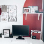The office received a pop of personality with Resene Red Berry on the Resene Eighth Rice Cake walls.