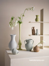 This neutral wall, plinth and shelf is in Resene Bleach White. Vases add a soft pop of colour in Resene Quarter Powder Blue, Resene Robin Egg Blue, Resene Donkey Brown, Resene Crisp Green and Resene Quarter Crisp Green. Project by Amber Armitage. Image by Melanie Jenkins.