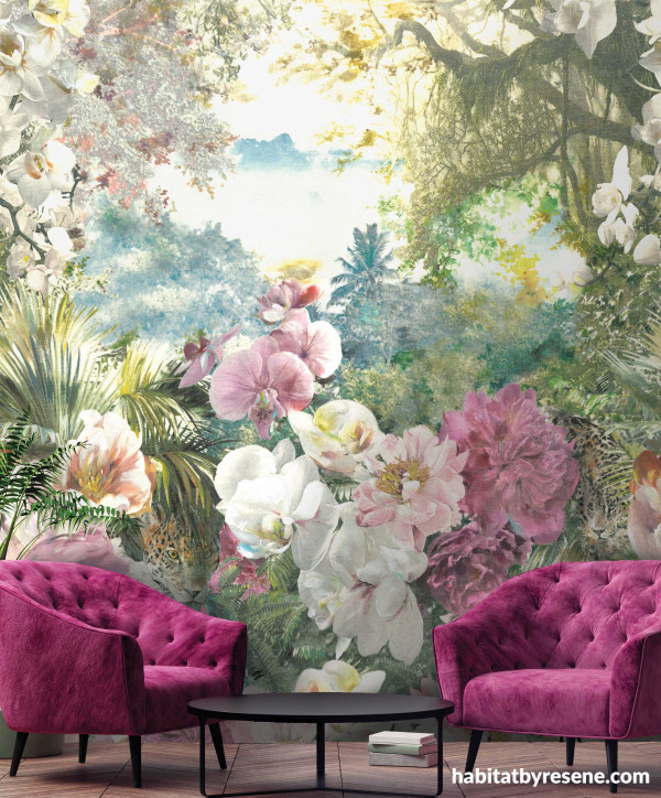 Hide in your own secret garden with Resene Wallpaper Collection 99345 from the Resene Utopia Wallpaper Collection – a mural that is sure to relax and rejuvenate you after a day out in the cold.